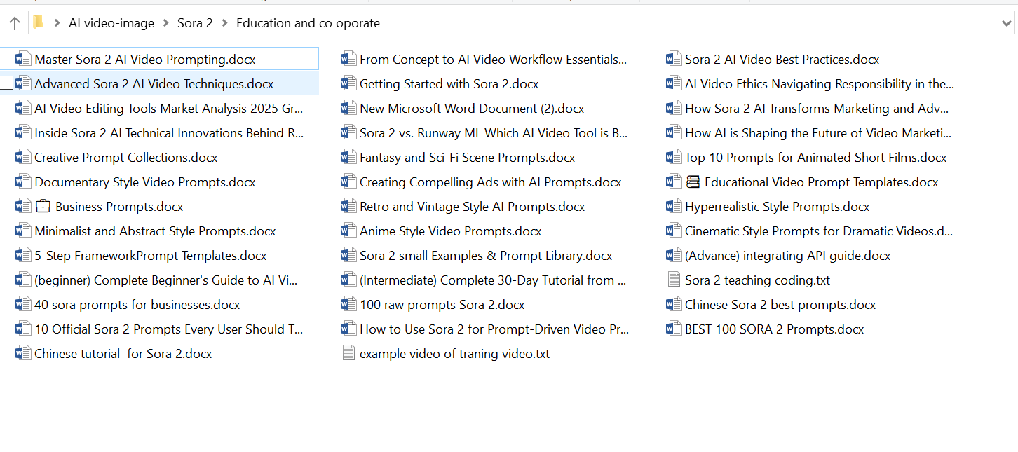 Its 125 FILES, with 125 TUTORIALS FILES, DOCS, and PDF and about AND ABOUT 3000 SORA PROMPTS